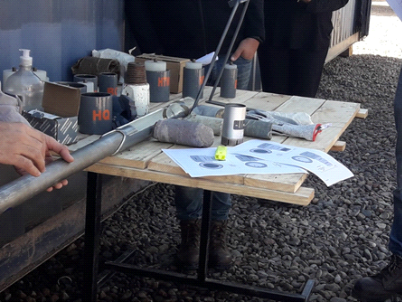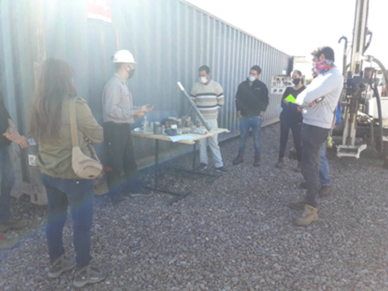 Se explicó a los estudiantes sobre los métodos de perforación utilizados por la empresa una descripción detallada de los métodos de perforación por aire reverso y diamantina y de los distintos elementos de perforación usados en cada método.