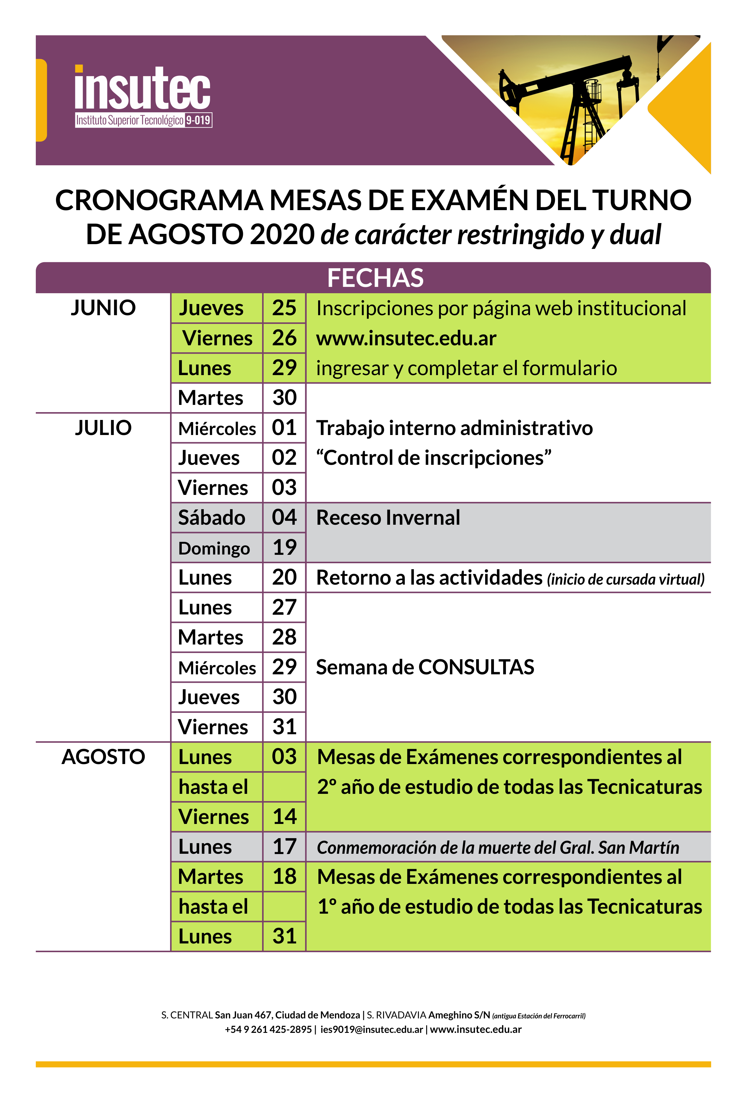 | CRONOGRAMA MESAS DE ÉXAMEN DE AGOSTO 2020