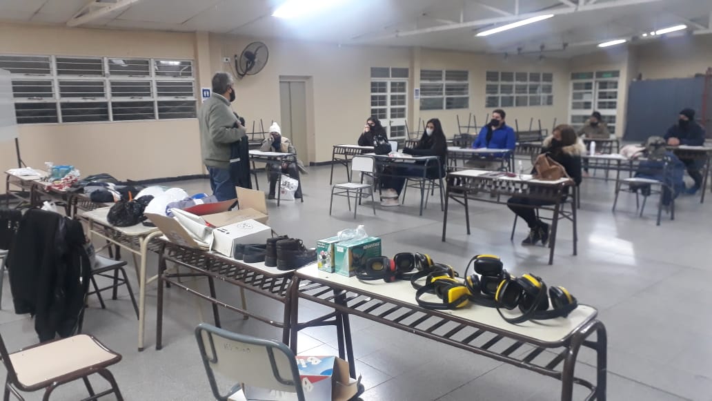 Se llevó a cabo una actividad presencial con alumnos de 1° y 2° año de la Tecnicatura Superior en Higiene y Seguridad Laboral, en la que se mostraron los elementos de protección personal y sus condiciones de uso.